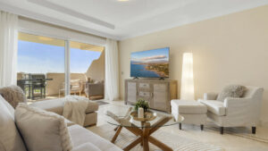 Ubicado en el prestigioso Aloha Hill Club, este elegante hogar de 2 dormitorios y 2 baños ofrece una superficie construida de 124 m² más 35 m² de terrazas, diseñadas para aprovechar la luz natural y capturar impresionantes vistas al mar. Su orientación sureste garantiza una brillante luz matutina y un ambiente cálido y acogedor durante todo el día.
