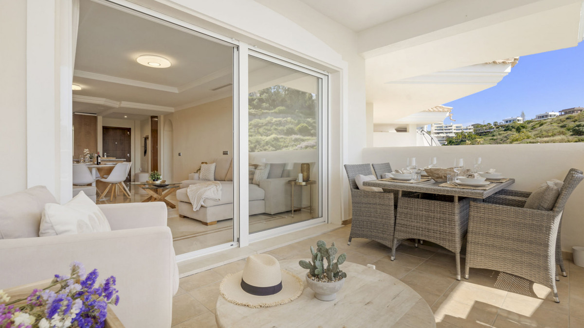 Ubicado en el prestigioso Aloha Hill Club, este elegante hogar de 2 dormitorios y 2 baños ofrece una superficie construida de 124 m² más 35 m² de terrazas, diseñadas para aprovechar la luz natural y capturar impresionantes vistas al mar. Su orientación sureste garantiza una brillante luz matutina y un ambiente cálido y acogedor durante todo el día.