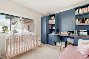 Desde allí se encuentran los dormitorios, incluyendo el dormitorio de invitados, actualmente utilizado como guardería/oficina, con una hermosa pared trasera y un baño de invitados con bañera. El dormitorio principal cuenta con baño en suite con ducha a ras de suelo y bañera de hidromasaje. Desde el dormitorio se accede tanto al balcón con vistas a La Concha como a la terraza principal.