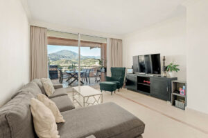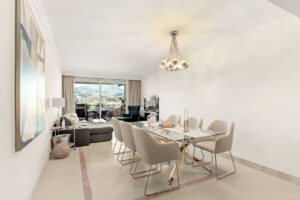 Ubicado en la emblemática comunidad de Magna Marbella, este impresionante apartamento en primera planta ofrece vistas panorámicas al campo de golf Naranjos y a las montañas.