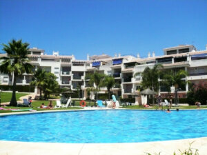 Este encantador apartamento se encuentra en perfecto estado. Cuenta con 2 dormitorios y 2 baños (uno en suite), cocina totalmente equipada, abundante luz natural y una encantadora terraza orientada al suroeste con vistas laterales a la espectacular piscina y a los impecables jardines comunitarios. Además, incluye una plaza de aparcamiento privada y un trastero, ambos incluidos en el precio. La propiedad necesita maquina nueva de aire acondicionado
