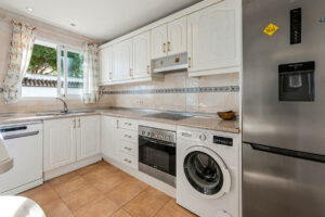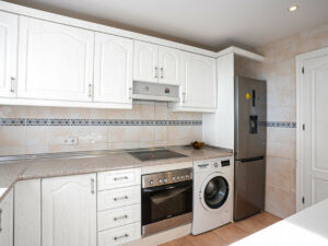 La cocina tiene una barra de desayuno y se abre al salón principal. Las estancias son luminosas y bien proporcionadas. El diseño es sencillo y funcional y se adapta tanto a una vivienda habitual como a una casa de vacaciones.
