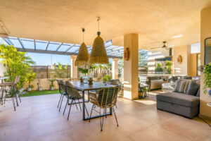 Un verdadero punto destacado de esta propiedad es la impresionante terraza privada, diseñada para maximizar la vida al aire libre. Este espacio exclusivo incluye una cocina exterior completamente equipada, una cómoda zona de estar y un jacuzzi privado, lo que lo convierte en el lugar ideal para cenas al aire libre, reuniones sociales o relajarse mientras disfruta de atardeceres tranquilos y noches estrelladas.