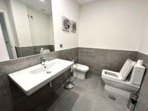 La vivienda es una planta baja con orientación sureste y noroeste, lo que le proporciona una excelente luminosidad y ventilación natural durante todo el día. Dispone de dos dormitorios y dos baños, ambos con armarios empotrados, además de aire acondicionado centralizado para un confort óptimo en cualquier época del año.