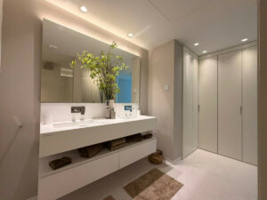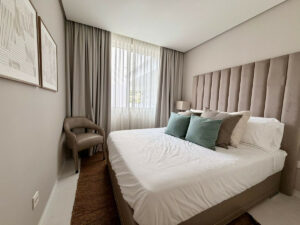 El dormitorio principal incluye armarios empotrados y un cuarto de baño en suite, mientras que el segundo dormitorio es ideal para invitados o familiares. La decoración interior es obra de Eric Kusters y