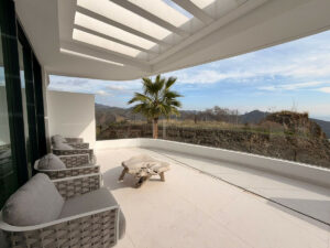 Este elegante apartamento de 2 dormitorios en primera planta a la venta se encuentra en el exclusivo desarrollo Granados, situado en la parcela más alta de la comunidad cerrada Palo Alto, Ojén, y disfruta de hermosas vistas panorámicas al mar sobre Marbella y el Mediterráneo.