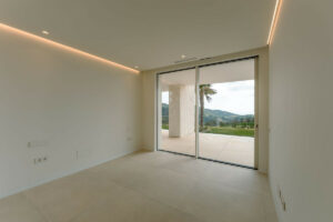 El elemento más destacado de la vivienda es su generosa terraza de 71 m² orientada al sur, que ofrece vistas abiertas al mar y largas horas de luz natural durante todo el día. Este amplio espacio exterior permite crear diferentes ambientes: comedor al aire libre, zonas lounge y espacios de relax, todo ello enmarcado por vistas al Mediterráneo y las colinas andaluzas.