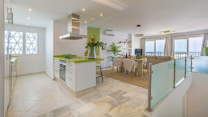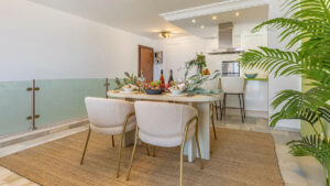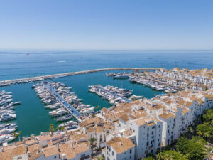 Moderno dúplex en Puerto Banús con impresionantes vistas al mar, a pocos pasos de la playa, restaurantes, boutiques de lujo y todos los servicios. Cuenta con dos dormitorios (uno en suite), dos baños —uno con jacuzzi—, cocina abierta totalmente equipada con barra de desayuno y un luminoso salón-comedor. Acabados en mármol, aire acondicionado nuevo y TV vía satélite. El edificio ofrece conserjería, seguridad nocturna y parking privado subterráneo.