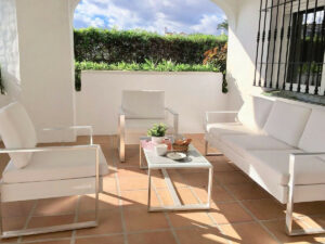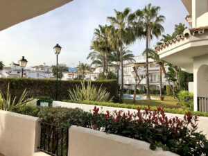Precioso y luminoso apartamento en planta baja, situado en la exclusiva urbanización Los Naranjos de Marbella, Fase VI, una de las más bonitas y tranquilas de Nueva Andalucía – Marbella (Málaga).