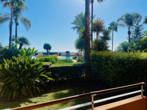 Descubra la elegancia costera en este impresionante apartamento de 2 dormitorios en suite, perfectamente situado en primera línea de playa. Una amplia terraza cubierta se integra armoniosamente con un jardín privado, ideal para disfrutar de comidas al aire libre y momentos de relax.