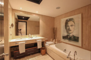En el interior, el apartamento ofrece suelo radiante en todas las estancias y aire acondicionado frío y calor, garantizando el máximo confort durante todo el año. La cocina completamente equipada cuenta con electrodomésticos de alta gama y se complementa con una lavandería independiente. Cada detalle ha sido cuidadosamente seleccionado con una decoración contemporánea y elegante.