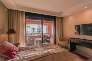 Viva el máximo lujo costero con este exclusivo apartamento en primera línea de playa de 2 dormitorios en suite, ubicado en la prestigiosa urbanización Malibu, a solo unos pasos de Puerto Banus. Con impresionantes vistas panorámicas al mar, esta residencia combina un diseño elegante con un confort excepcional.