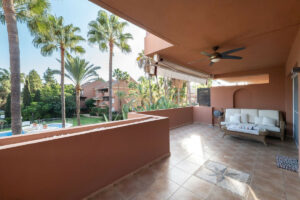 Embrujo Playa es uno de los complejos residenciales más consolidados y tranquilos en la zona de playa de Puerto Banús. A solo 5 minutos a pie del mar y del paseo marítimo, ofrece jardines tropicales, dos piscinas exteriores, seguridad 24 horas y una ubicación privilegiada cerca de tiendas, restaurantes, clubes de playa, centros deportivos y colegios internacionales.