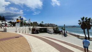El apartamento forma parte de una comunidad tranquila y muy bien cuidada, con altos árboles y plantas subtropicales, fuentes de estilo andaluz, una gran piscina con acceso a duchas y baños e incluso una pista de pádel.