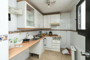 La propiedad incluye 2 dormitorios amplios, 2 baños, y un salón espacioso con chimenea. El piso necesita una renovación, ofreciendo varias opciones de mejora: la cocina puede integrarse al salón para crear un espacio de día más amplio, o bien destinar ese área a la creación de un tercer dormitorio, según el proyecto que se desee.