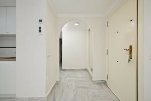 El apartamento cuenta con 2 dormitorios y 2 baños, incluyendo una suite principal con su propio baño ensuite. Ambos dormitorios disponen de armarios empotrados, complementados por un armario adicional en el pasillo. La moderna cocina de concepto abierto se integra perfectamente con el amplio salón-comedor.