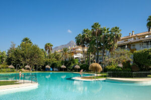 Ubicado dentro de una comunidad segura con vigilancia las 24 horas y a solo 10 minutos a pie del vibrante distrito de Puerto Banús, este impresionante apartamento en planta baja se encuentra rodeado de 70.000 m² de hermosos jardines tropicales cuidadosamente diseñados.