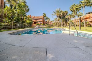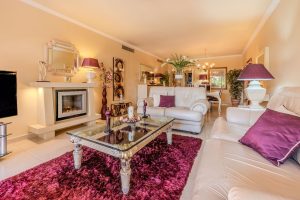 Magnífico apartamento en planta baja en la exclusiva urbanización Embrujo Playa, una de las zonas más cotizadas de Marbella por su privilegiada ubicación junto al mar y a escasos minutos de Puerto Banús. La vivienda dispone de dos amplios dormitorios y 172 m² interiores, ofreciendo espacios generosos, cómodos y muy bien distribuidos. Su orientación sur garantiza una excelente luminosidad durante todo el día, creando un ambiente cálido y acogedor en toda la propiedad.