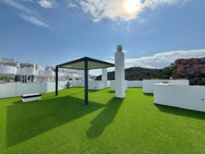 Las zonas comunes incluyen zonas verdes para disfrutar al aire libre, piscina con zona de chill out y pista de pádel.