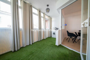 Terraza acristalada con orientación norte y este, ideal como zona de desayuno, despacho o rincón de lectura