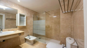El apartamento cuenta con dos dormitorios y dos baños completos, incluido un dormitorio principal con baño en suite que garantiza la privacidad y el confort. El amplio y acogedor salón se abre directamente a la terraza, creando una fluidez perfecta entre los espacios interiores y exteriores.
