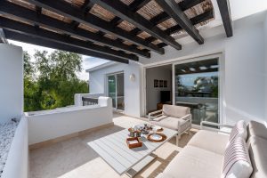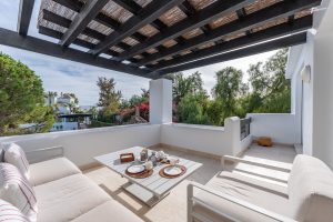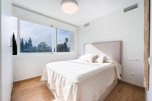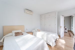 Originalmente era un amplio apartamento de un dormitorio, pero se reformó para convertirlo en uno de 2 dormitorios y un baño. Al entrar en el apartamento, le da la bienvenida un amplio vestíbulo abierto que conduce directamente al salón diáfano, decorado con muebles y accesorios de alta gama. A la derecha de la entrada hay una bonita cocina blanca que da al comedor y al salón. Si se sigue por el salón, se llega a la amplia y preciosa terraza que da a la piscina y al sur.