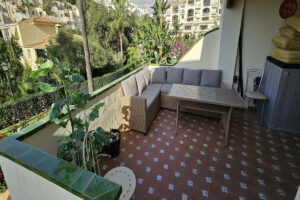 Está ubicado en una hermosa zona residencial cerca de todo. La propiedad tiene jardines muy bien cuidados y una piscina comunitaria. La playa, restaurantes, supermercados… Todos los servicios están a poca distancia.