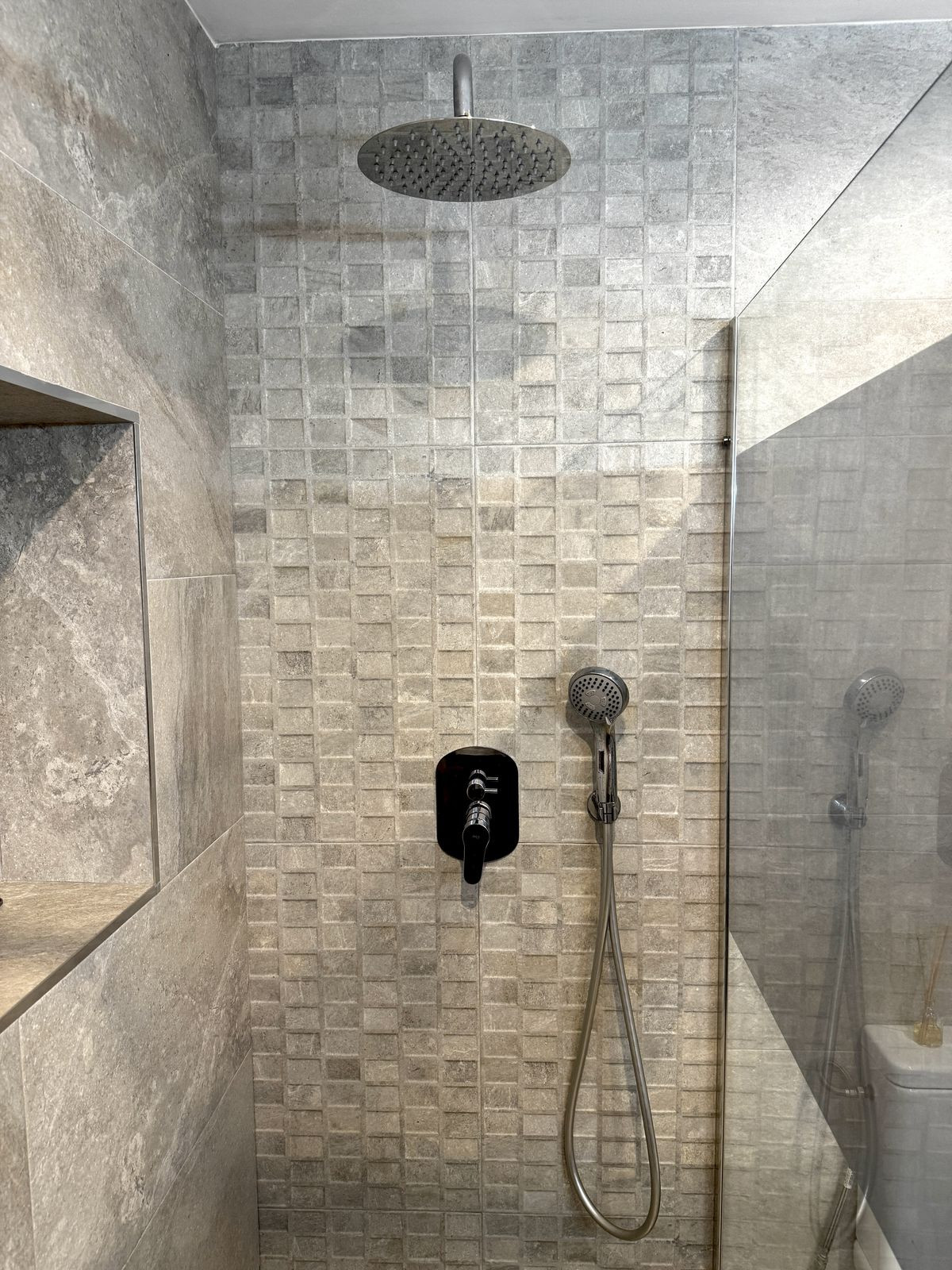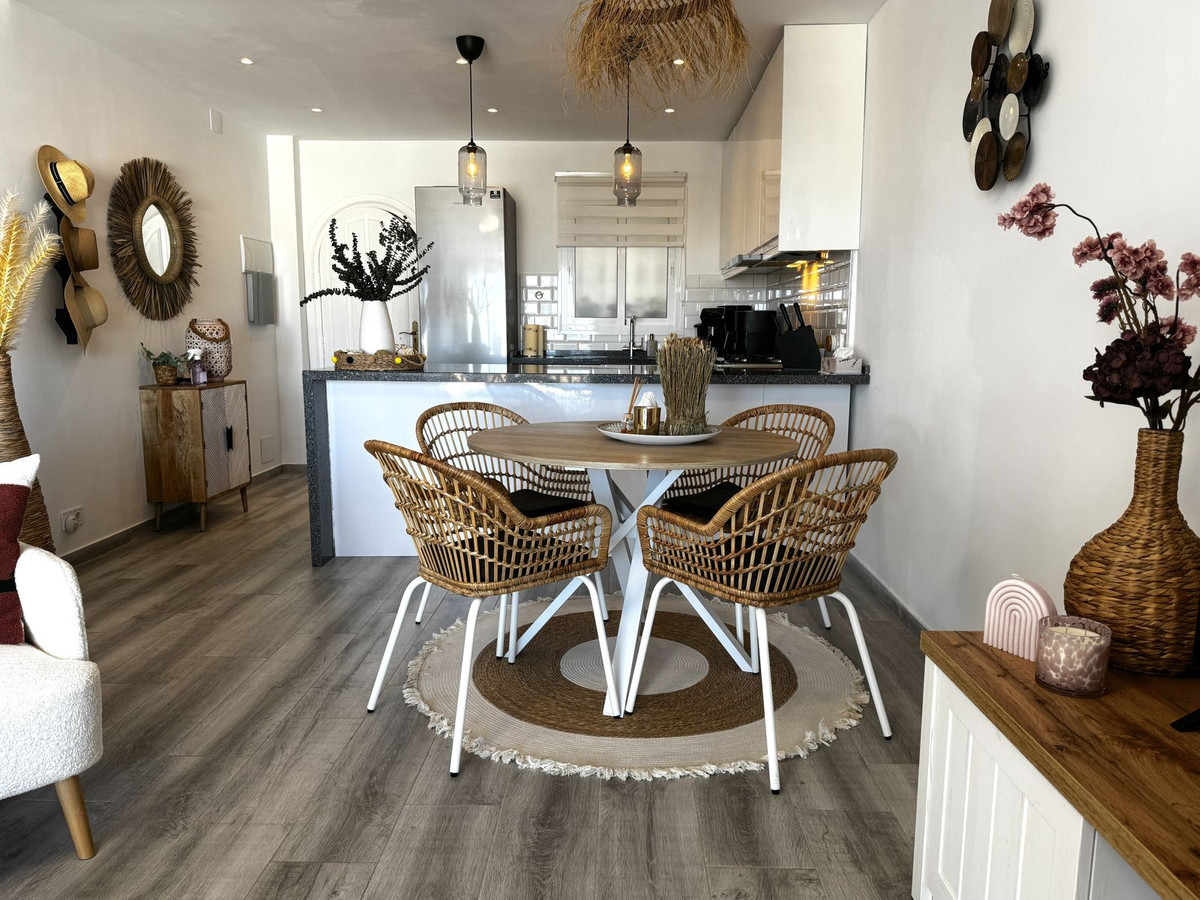 Cuenta con dos dormitorios con armarios empotrados y un elegante baño con ducha a ras de suelo. La propiedad está equipada con aire acondicionado en todas las estancias y grandes puertas correderas de doble acristalamiento que aportan abundante luz natural y un ambiente interior confortable.