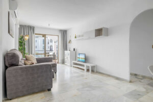 Ubicado en el conocido complejo Mercurio en Riviera del Sol, este apartamento orientado al sur ofrece bonitas vistas al mar entre los edificios colindantes y una excelente ubicación a poca distancia a pie de todos los servicios.