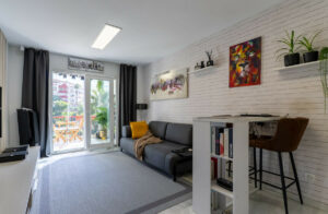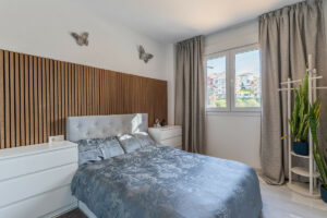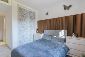 La cocina, moderna y totalmente equipada, ofrece funcionalidad y estilo, mientras que los dos dormitorios son amplios y confortables, contando el principal con baño en suite. El apartamento forma parte de una urbanización cuidada que dispone de ascensor, piscina comunitaria, plaza de aparcamiento privada y trastero.