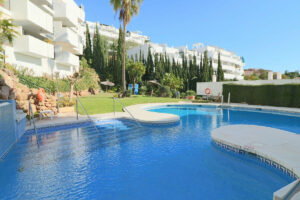 El residencial ofrece piscina y jardines comunitarios, ideales para disfrutar del clima de la Costa del Sol. El precio incluye plaza de garaje y trastero, aportando comodidad y espacio extra de almacenamiento.