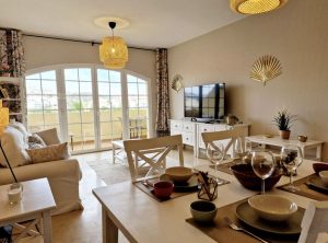 Piso situado en Royal Golf, al lado del club de golf, dos dormitorios y dos baños, cocina equipada, baño reformado, con vistas al golf y vista parciales al mar , se vende amueblado, el piso dispone de licencia turistica, ascensor, plaza de parking y trastero de 20 mentros,. La comunidad dispone de dos piscina