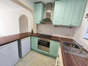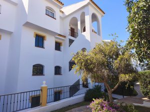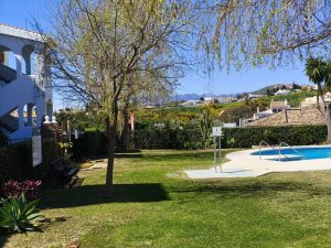 Se accede a la puerta principal bajando 8 escalones desde los cuidados jardines y la piscina comunitaria. Con una cocina equipada que se abre a un salón-comedor, el cual a su vez se abre a una maravillosa terraza soleada orientada al sur, el espacio es sumamente práctico. Se ha habilitado un práctico trastero junto a la terraza. Ambos dormitorios son lo suficientemente grandes para una cama doble o dos individuales y ambos están equipados con amplios armarios. Desde la ventana del dormitorio principal, además, se puede disfrutar de vistas parciales al mar. El aire acondicionado, recientemente instalado en el salón, es capaz de enfriar todo el apartamento rápidamente si es necesario, y las ventanas se han sustituido recientemente por ventanas de doble acristalamiento de alta calidad con mosquiteras y persianas. Gracias a su excelente ubicación, no es necesario tener coche, pero hay amplio aparcamiento en la calle, ya que se puede acceder a la urbanización desde dos lados. Los propietarios desean una venta rápida y sencilla, y las visitas son fáciles de concertar.