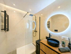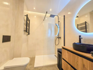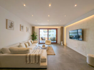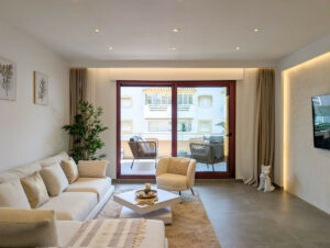 La cocina es el sueño de cualquier chef, con muebles elegantes y de alta gama de Alemania, y los electrodomésticos más recientes de Bosch, como un frigorífico para 21 botellas de vino, lavavajillas para 12 personas, cocina de inducción, horno y microondas. Los armarios con sensores de última generación añaden un toque de innovación, mientras que el sistema de filtración de agua potable de Philips garantiza comodidad y salud. El apartamento ofrece un confort lujoso con suelos radiantes en ambos baños, y un interruptor maestro controla todas las luces y enchufes, brindándote control total sobre tu espacio. Un sistema de aire acondicionado central mantiene todo el apartamento fresco, y una caja fuerte empotrada y mirilla digital proporcionan mayor seguridad. Para mayor comodidad, un robot aspirador se encarga de los suelos, y el apartamento cuenta con una garantía de dos años en todos los muebles, electrodomésticos y trabajos de renovación. Esta es una rara oportunidad de adquirir una propiedad de alto nivel, completamente renovada, en una de las ubicaciones más deseadas frente al mar, donde el lujo moderno se encuentra con la serenidad costera.