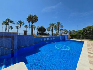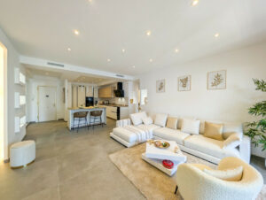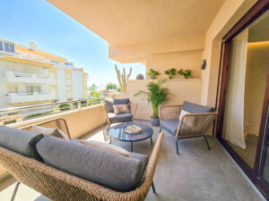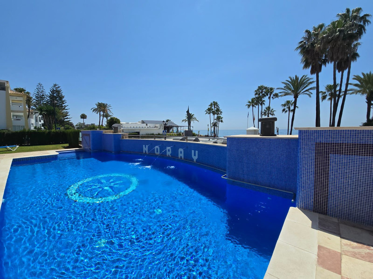 Este lujoso apartamento de 2 dormitorios y 2 baños, ubicado en la prestigiosa urbanización frente al mar en San Pedro, ha sido completamente transformado con renovaciones de alta calidad, ofreciendo una experiencia de vida moderna y sofisticada. Cada aspecto del hogar ha sido mejorado, incluyendo un nuevo sistema de agua y cableado eléctrico en toda la vivienda.