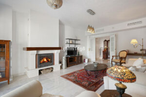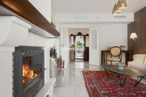 Acceda a un acogedor vestíbulo que conduce al amplio salón, que cuenta con una chimenea tipo cassette, ideal para las noches de invierno. Desde aquí, unas grandes puertas correderas se abren a una terraza privada cubierta en forma de L. Gracias a su posición en esquina, la terraza goza de excelente privacidad y ofrece dos zonas diferenciadas: una para relajarse y otra perfecta para comer al aire libre.