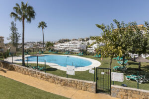 La urbanización cuenta con zonas ajardinadas, piscina comunitaria, pista de pádel y zona de parque para niños.
