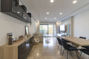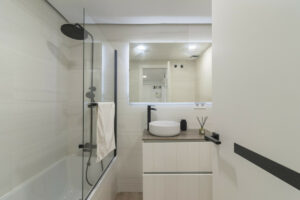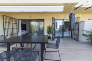 Apartamento en planta baja aunque tiene altura con una gran terraza. Al ingresar al apartamento nos encontramos con un amplio salón comedor, cocina independiente, totalmente reformada y equipada. También el piso cuenta con dos amplios dormitorios y dos cuartos de baños también reformados(1 de ellos en suite).