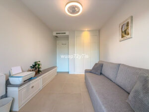 Al avanzar, encontrará un luminoso y espacioso salón con cómodos sofás, ideal para relajarse o recibir invitados. Girando a la derecha desde el salón, se encuentra un dormitorio de invitados con su propio baño y, más adelante, el dormitorio principal con baño en suite.