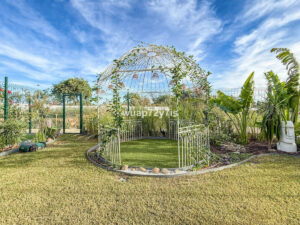 La terraza está cubierta y bellamente decorada, con una zona de estar con sofás y un espacio de comedor donde podrá disfrutar del desayuno, el almuerzo o la cena al aire libre. Más allá de la terraza, hay un jardín privado con césped, perfecto para colocar tumbonas y disfrutar del sol. Alrededor del jardín hay plantas y arbustos decorativos que aportan privacidad y armonía visual. También puede plantar flores para hacerlo aún más acogedor y personal.