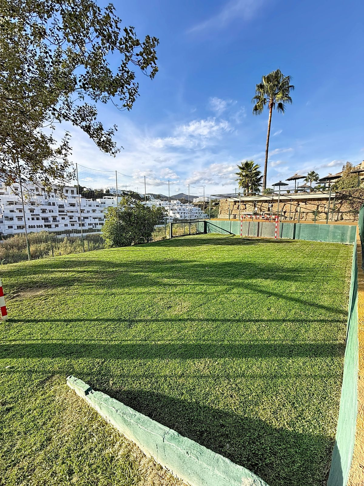 La comunidad cerrada ofrece excelentes instalaciones: amplias zonas ajardinadas, pista de fútbol, pista de pádel, zona de barbacoa comunitaria, piscina exterior, parque infantil, zona de ping-pong y gimnasio al aire libre.