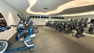 Gimnasio totalmente equipado y sala de yoga/fitness con espejos