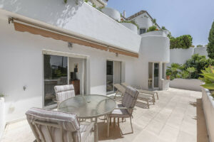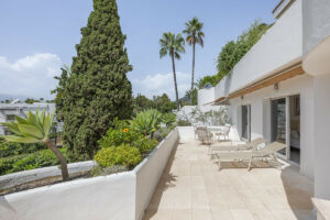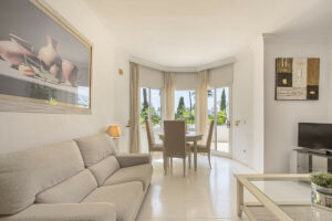 Este luminoso apartamento en planta intermedia se encuentra en una exclusiva urbanización en Las Lomas del Marbella Club, con seguridad 24 horas, amplios jardines y 3 piscinas, una de ellas climatizada.