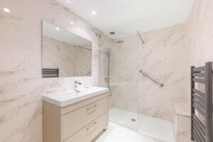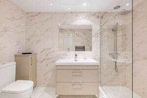 La propiedad también ofrece una terraza de 45 m² orientada al oeste, rodeada de vegetación y con vistas a los jardines comunitarios — un lugar ideal para relajarse o recibir invitados.