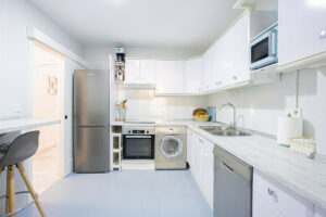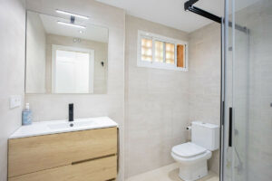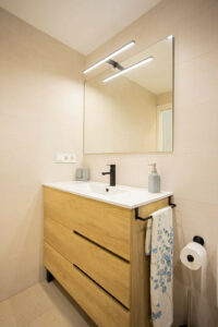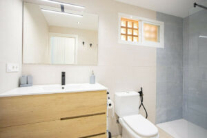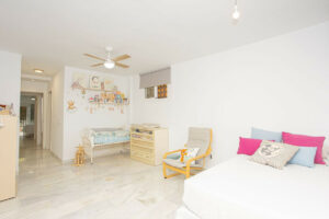 En su interior, la distribución actual comprende dos amplios dormitorios y dos baños, con la posibilidad de crear un tercer dormitorio gracias a su generoso tamaño.