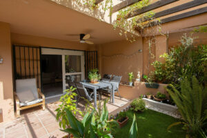 Este luminoso apartamento en planta baja se encuentra dentro de un complejo residencial privado en la prestigiosa Milla de Oro de Marbella.