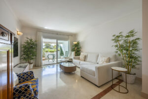El encantador apartamento de dos dormitorios es más que una simple residencia. Se encuentra situado en uno de los enclaves mas demandados y lujosos de Marbella, a dos pasos de la playa y de los chiringuitos y locales de ocio de moda como el prestigioso Cappuccino del hotel Don Pepe, sin olvidar que esta a cinco minutos a pie del Casco Antiguo de la ciudad.