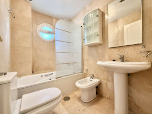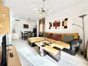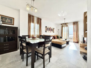 La vivienda dispone de un considerable salón – salon comedor. Desde el salón se accede a una terraza orientada al sur, con vistas a los jardines comunitariosEn esta misma planta se encuentran dos espaciosos dormitorios con armarios empotrados y dos baños completos, uno de ellos en suite en el dormitorio principal. Ademas encontramos una cocina equipada, con lavadero independiente.