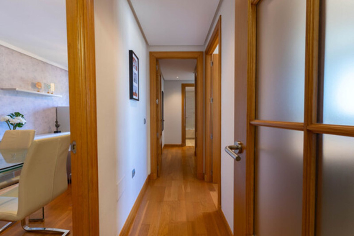 •Distribución: El piso consta de terraza cubierta de 4 metros cuadrados, vestíbulo con armario empotrado, distribuidor, cocina moderna totalmente equipada y lavadero, salón comedor muy luminoso, dos habitaciones espaciosas con armarios empotrados, dos baños completos, uno con bañera (este en suite en el dormitorio principal) y otro con amplia ducha.