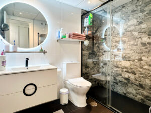Disfruta de tu propio rincón al aire libre con una terraza de 7 m² con vistas al mar, ideal para relajarse con un café por la mañana o disfrutar de una velada bajo las estrellas. Este espacio exterior complementa la experiencia de vivir en la costa.